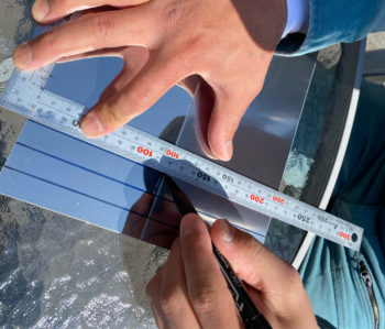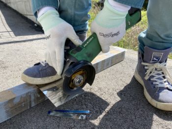 まずは、代表がサイズを決めたこのステンレスの板をを切る作業なのですが